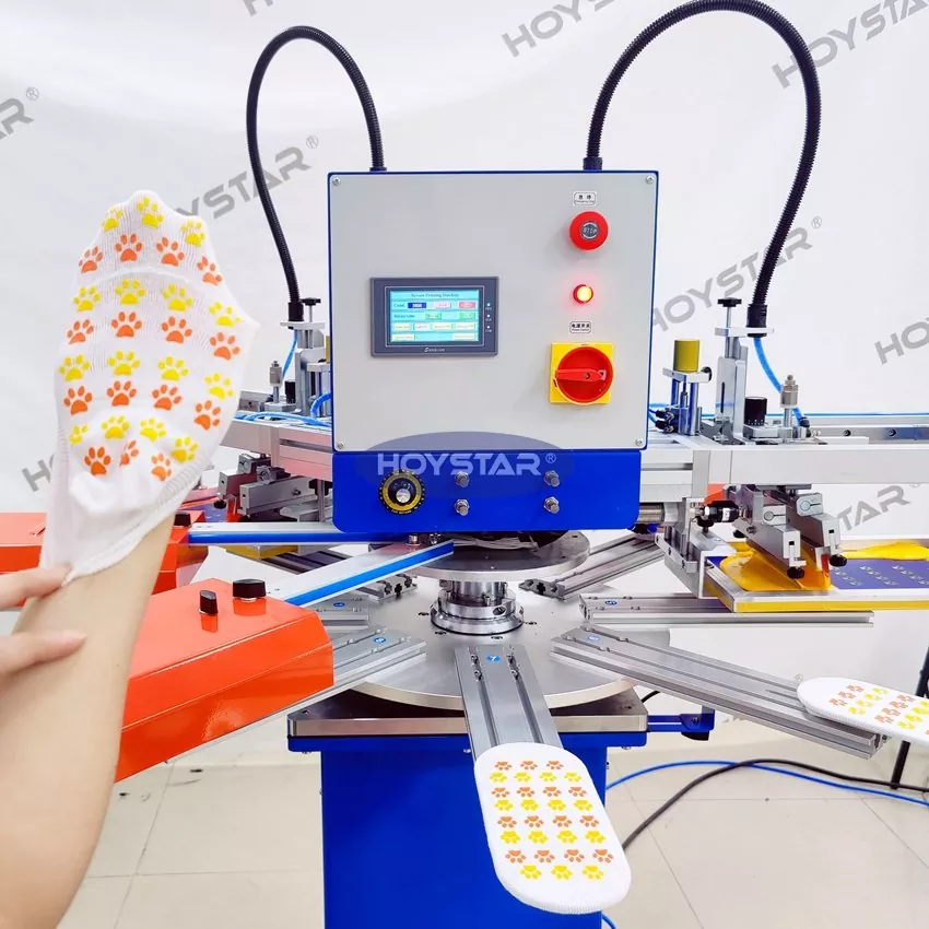 우리의 미끄럼 방지 2색 양말 스크린 인쇄기는 아기 양말, 애완 동물 양말, 성인용 양말, 축구 양말, 그립 양말과 같은 고품질 미끄럼 방지 양말을 위한 디자인입니다. 운동용, 의료용, 아동용, 요가용 양말 전문 제조업체가 인쇄용으로 구매하기에 적합합니다.