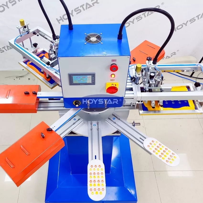 중국의 전문 제조업체로서 우리는 고속 HOYSTAR 2색 양말 스크린 인쇄기를 제공하고 싶습니다. 우리의 기계는 PLC 및 터치 스크린 제어를 채택하고 주로 다양한 유형의 양말을 인쇄하는 데 사용됩니다. 양말의 밑창과 뒷굽 부분에도 프린팅이 가능하며, 실리콘과 잉크를 잘 건조시킬 수 있는 건조 오븐도 갖춰져 있다.