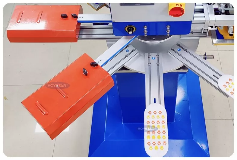 전문 제조업체이자 공급업체인 HOYSTAR High Rapid 2색 양말 스크린 인쇄기는 직물 편직 산업 분야의 응용 분야를 위해 설계되었습니다. 최대 1000PCS/Hr의 속도로 미끄럼 방지 양말, 유아용 양말, 성인용 양말, 축구 양말 등을 인쇄하는 데 적합합니다. 회전식 작업대가 장착되어 있어 양말을 싣고 내리는 것이 매우 편리합니다. PLC 터치스크린 제어, 작동이 매우 쉽습니다. 건조 시스템을 갖춘 기계는 실리콘과 잉크를 잘 건조시킬 수 있습니다.