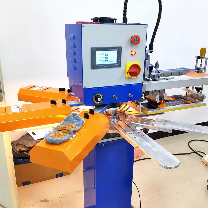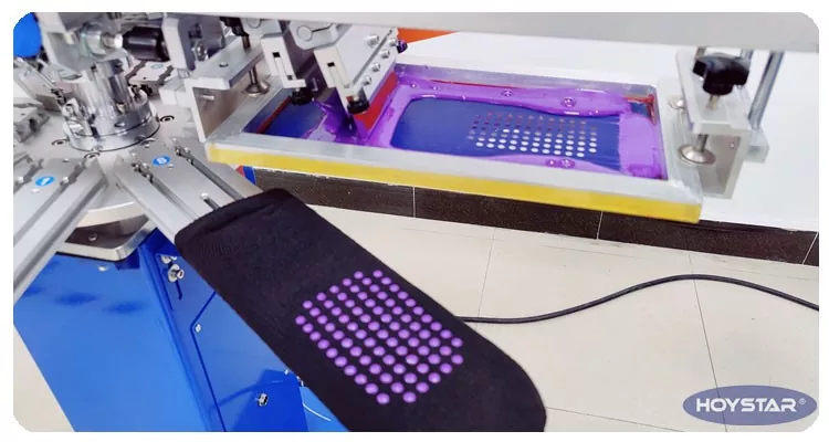 전문 제조업체이자 공급업체인 HOYSTAR 고속 미끄럼 방지 양말 스크린 인쇄기는 직물 편직 산업 분야의 응용 분야를 위해 설계되었습니다. 최대 1000PCS/Hr의 속도로 미끄럼 방지 양말, 유아용 양말, 성인용 양말, 축구 양말 등을 인쇄하는 데 적합합니다. 회전식 작업대가 장착되어 있어 양말을 싣고 내리는 것이 매우 편리합니다. PLC 터치스크린 제어, 작동이 매우 쉽습니다. 건조 시스템을 갖춘 기계는 실리콘과 잉크를 잘 건조시킬 수 있습니다.