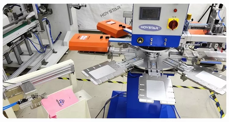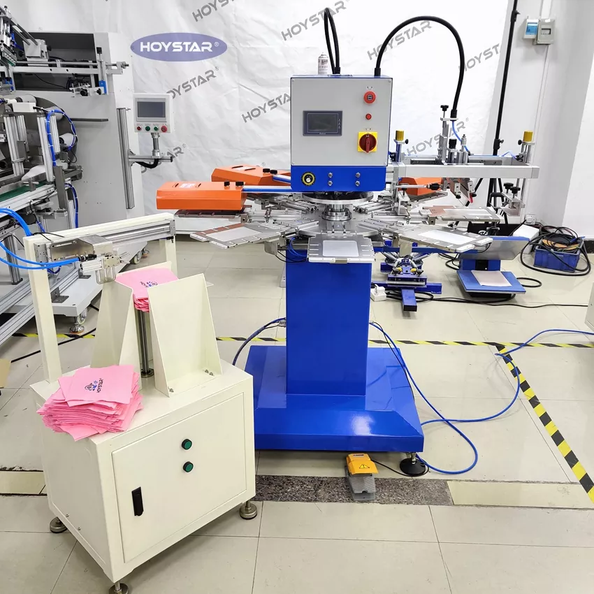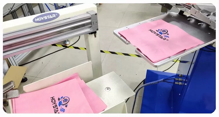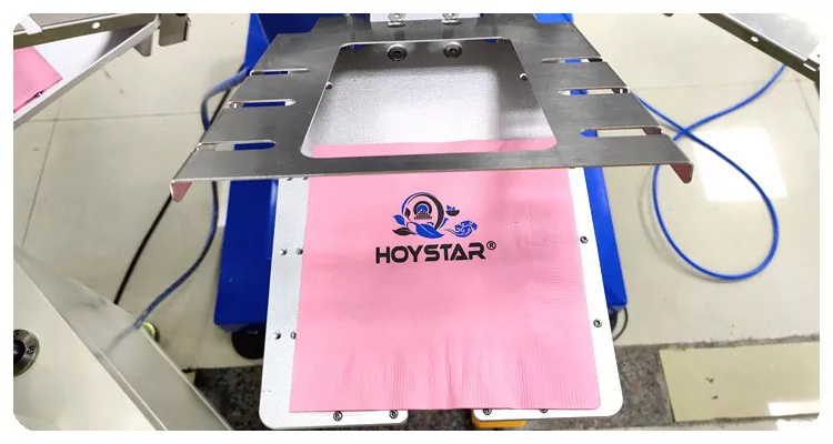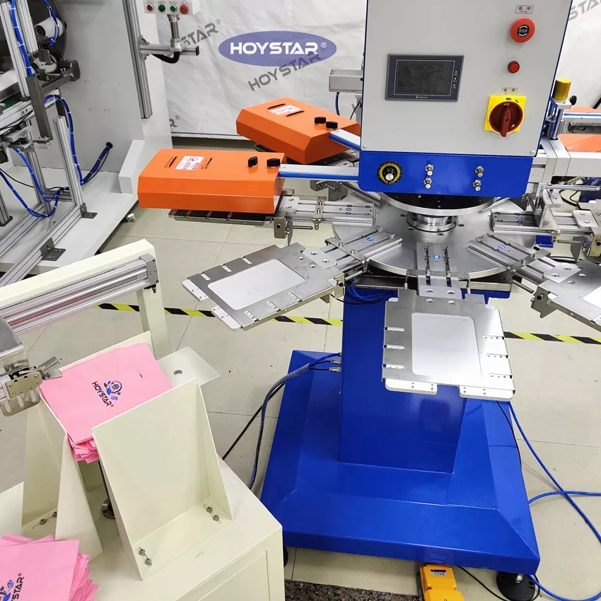 HOYSTAR는 중국의 신뢰할 수 있는 제조업체 및 공급업체입니다. 이 HOYSTAR 자동 2색 냅킨 스크린 인쇄 기계는 냅킨에 완전 자동 인쇄를 위해 특별히 설계되었습니다. 간소화된 인쇄 프로세스는 다음과 같이 전개됩니다. 냅킨을 기계에 수동으로 로드 - 첫 번째 색상의 자동 인쇄 - 자동 건조 - 두 번째 색상의 자동 인쇄 - 자동 건조 - 자동 하역 및 자동 제품 수집.