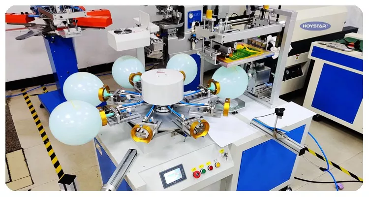 전문 제조 업체 및 공급 업체로서 HOYSTAR 전자동 1 색 풍선 스크린 인쇄기. 라텍스 풍선에 인쇄하도록 설계되었습니다. 회전식 작업대, 자동 로딩, 자동 블로잉, 자동 회전, 자동 건조, 자동 언로드 기능을 갖추고 있습니다. 안전하고 직관적인 작동을 위한 PLC 터치 스크린 제어, 사용자 친화적인 인터페이스. 이 기계는 속도, 정밀도 및 사용 편의성을 결합합니다.