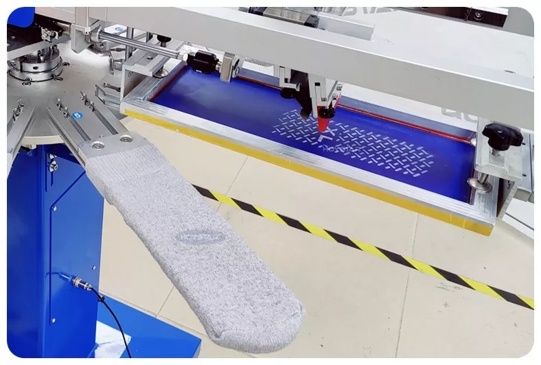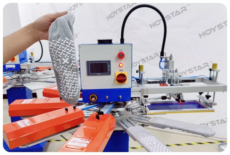 당사의 양말용 미끄럼 방지 스크린 인쇄기는 아기 양말, 애완동물 양말, 성인용 양말, 축구 양말, 그립 양말과 같은 고품질 미끄럼 방지 양말을 위한 설계입니다. 운동용, 의료용, 아동용, 요가용 양말 전문 제조업체가 인쇄용으로 구매하기에 적합합니다.