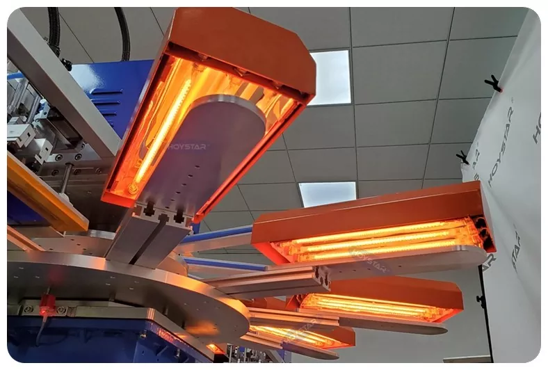 6개의 IR 건조 시스템 세트로 실리콘 젤과 잉크를 효과적으로 건조할 수 있습니다.