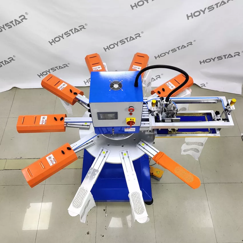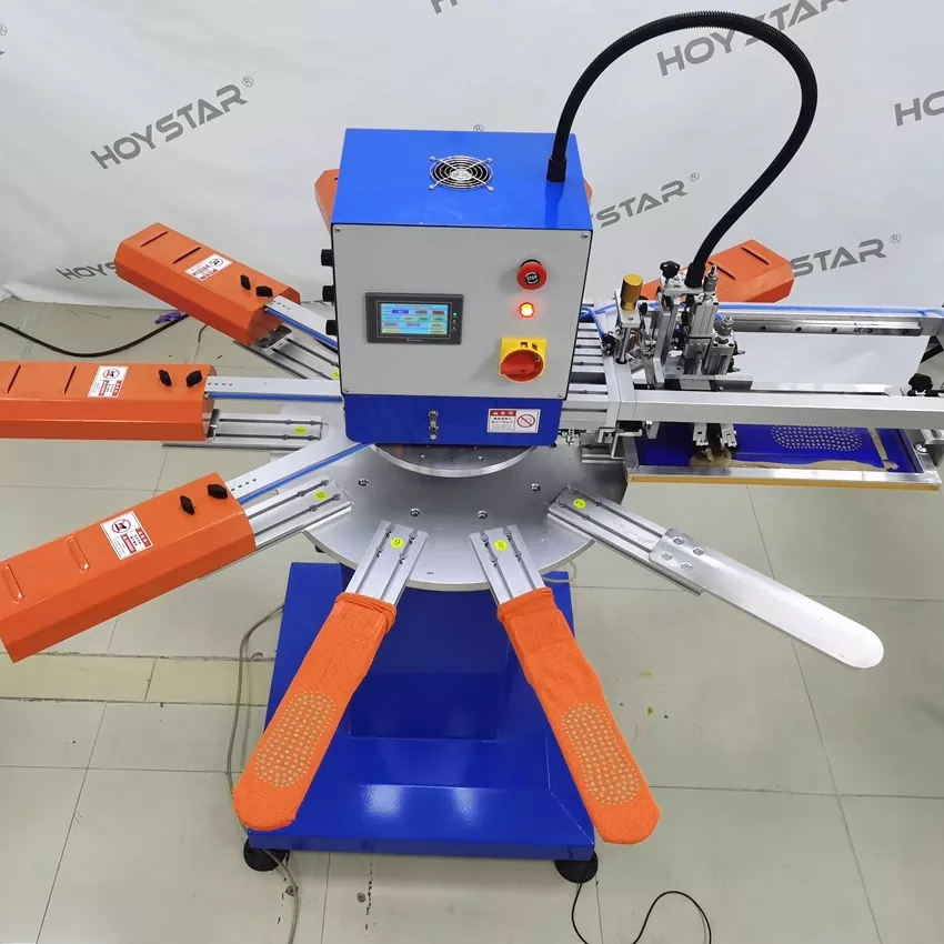 전문 제조업체이자 공급업체인 HOYSTAR High Rapid 스크린 인쇄기(양말용)는 직물 편직 산업 분야의 응용 분야를 위해 설계되었습니다. 최대 1000PCS/Hr의 속도로 미끄럼 방지 양말, 유아용 양말, 성인용 양말, 축구 양말 등을 인쇄하는 데 적합합니다. 회전식 작업대가 장착되어 있어 양말을 싣고 내리는 것이 매우 편리합니다. PLC 터치스크린 제어, 작동이 매우 쉽습니다. 건조 시스템을 갖춘 기계는 실리콘과 잉크를 잘 건조시킬 수 있습니다.